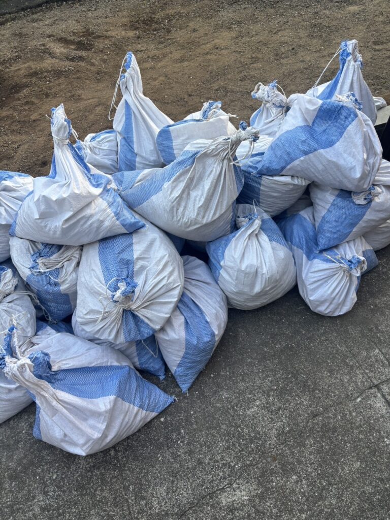 自宅の駐車場アスファルト片づけから土嚢袋30個、