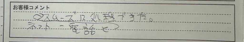 お客様より今回のクリーンワークスのお仕事ぶり、