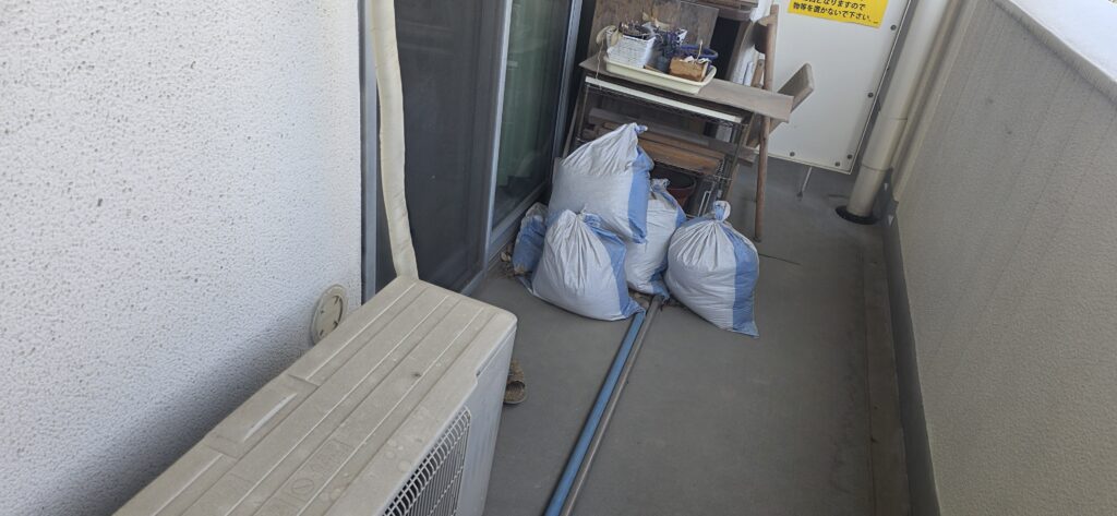 ベランダには、袋詰めされた土や植木まわりの撤去物、ガーデニング用品、廃材もありました🌿