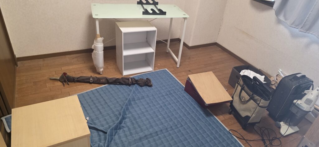 今回の現場は、マンション4階・エレベーターありの室内でした🏢🌱 和室には大量の布団や寝具、スーツケース、細かな生活用品がまとまっており、洋室にはデスク・棚・小型家具・掃除機などの家財道具、