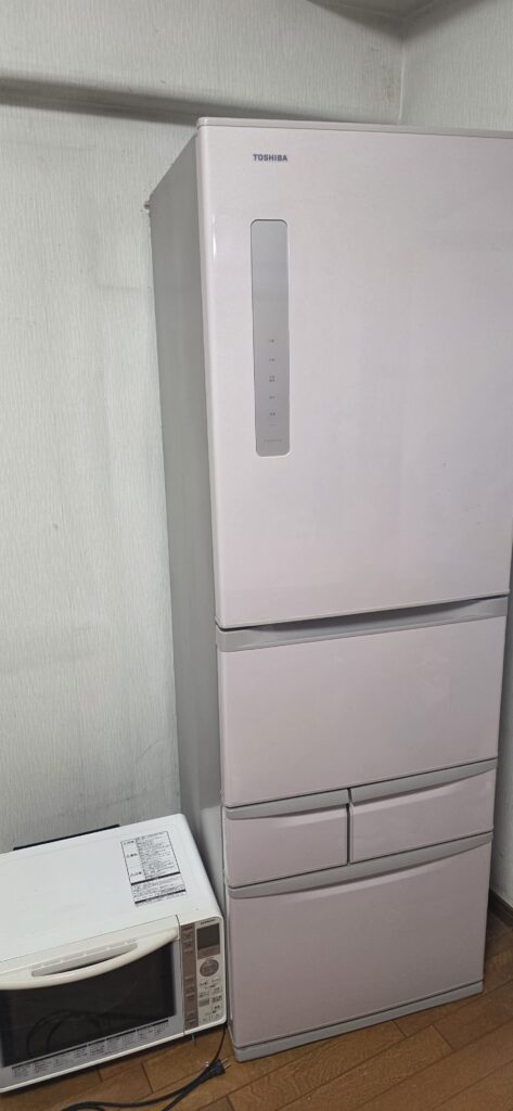 さらにキッチン側には大型のファミリー冷蔵庫と電子レンジ、洗濯機置場には洗濯機、窓際にはウィンドウエアコン、そして室内外には通常の壁掛けエアコン2台という、退去前らしい“まとめて片付け案件”でございました😆📸