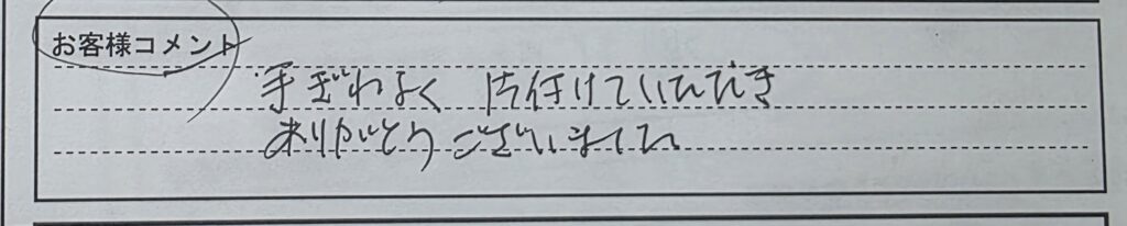 「手ぎわよく、片付けていただきありがとうございました」