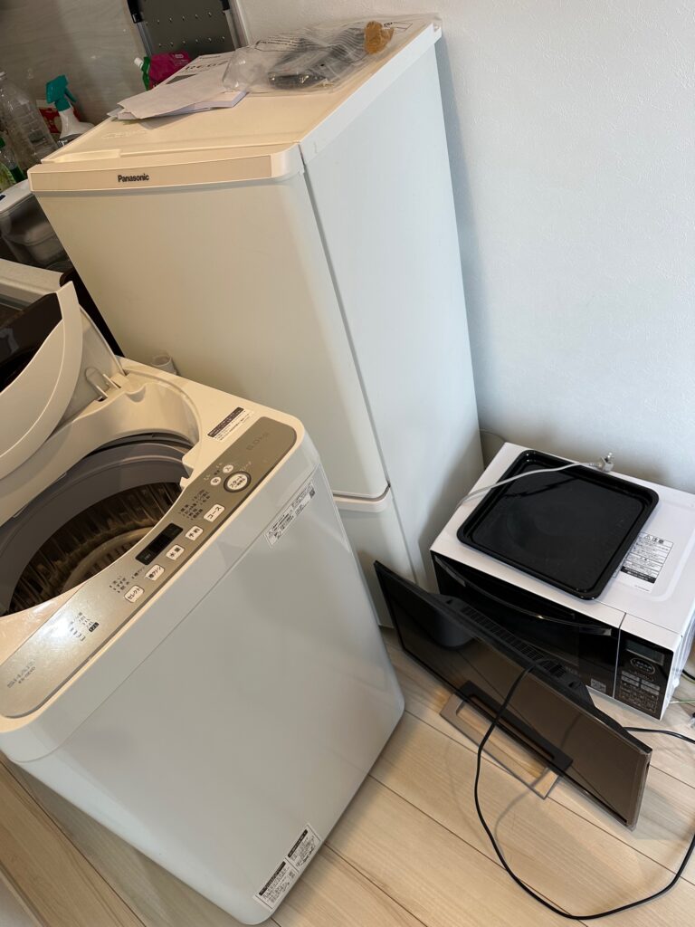 2ドア冷蔵庫、洗濯機、電子レンジ、TVと