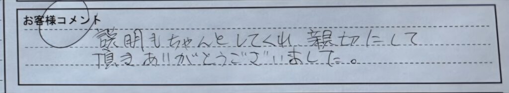 「説明もちゃんとしてくれて親切にして頂きありがとうございました。」
