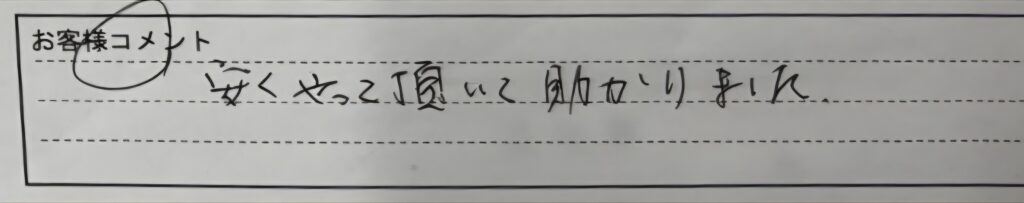 、嬉しい「感謝の声」を頂戴いたしましたので、
